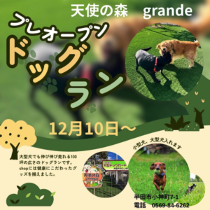 12/21(日) 大型犬専用 ドックガーデン・サロン「天使の森 GRANDE」オープンのお知らせ